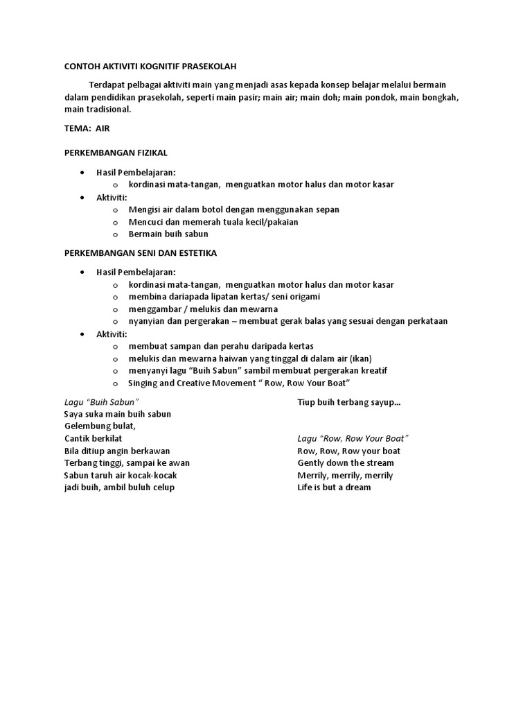 Contoh Aktiviti Belajar Sambil Bermain