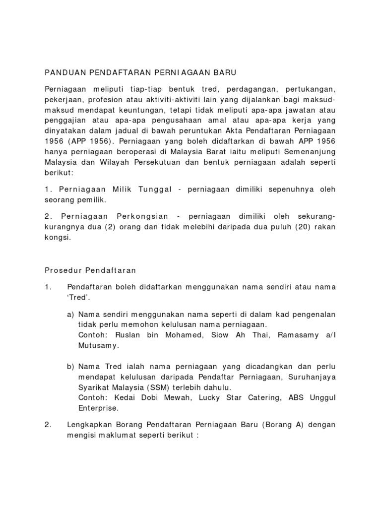 Pdf Panduan Pendaftaran Perniagaan Baru New Nur Jannah Academia Edu