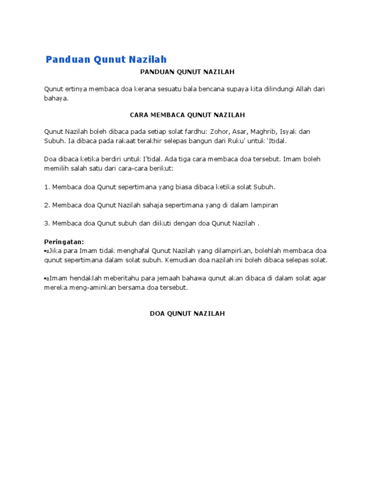 Rumi Doa Qunut Solat Subuh Untuk Imam Sendirian Dan Nazilah 1001 Ucapan