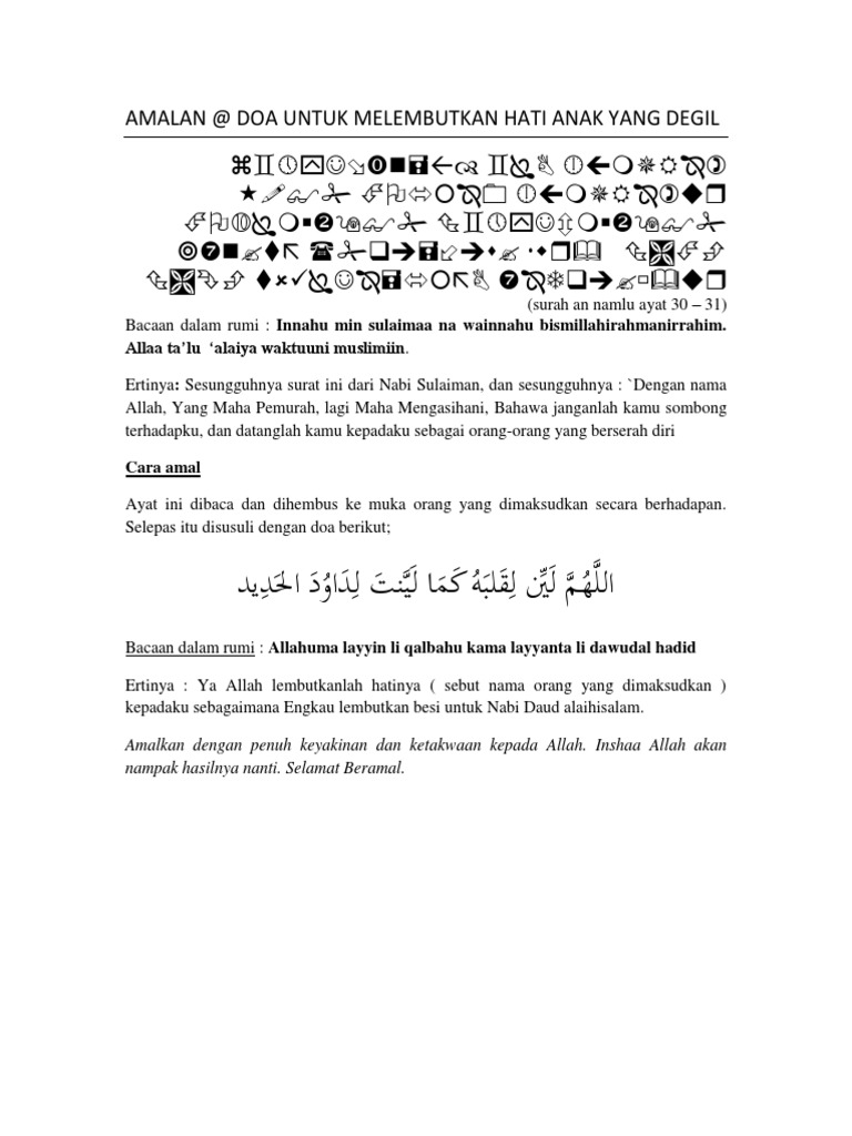 Amalan Doa Untuk Melembutkan Hati Anak Yang Degil Allaa Ta Lu Alaiya Waktuuni Muslimiin