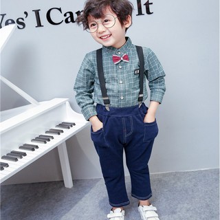 Musim Luruh Kanak Kanak Lelaki Kanak Kanak Lelaki Lengan Panjang Baju Kotak Kotak Kapas Jeans Tali Boleh Laras Shopee Malaysia