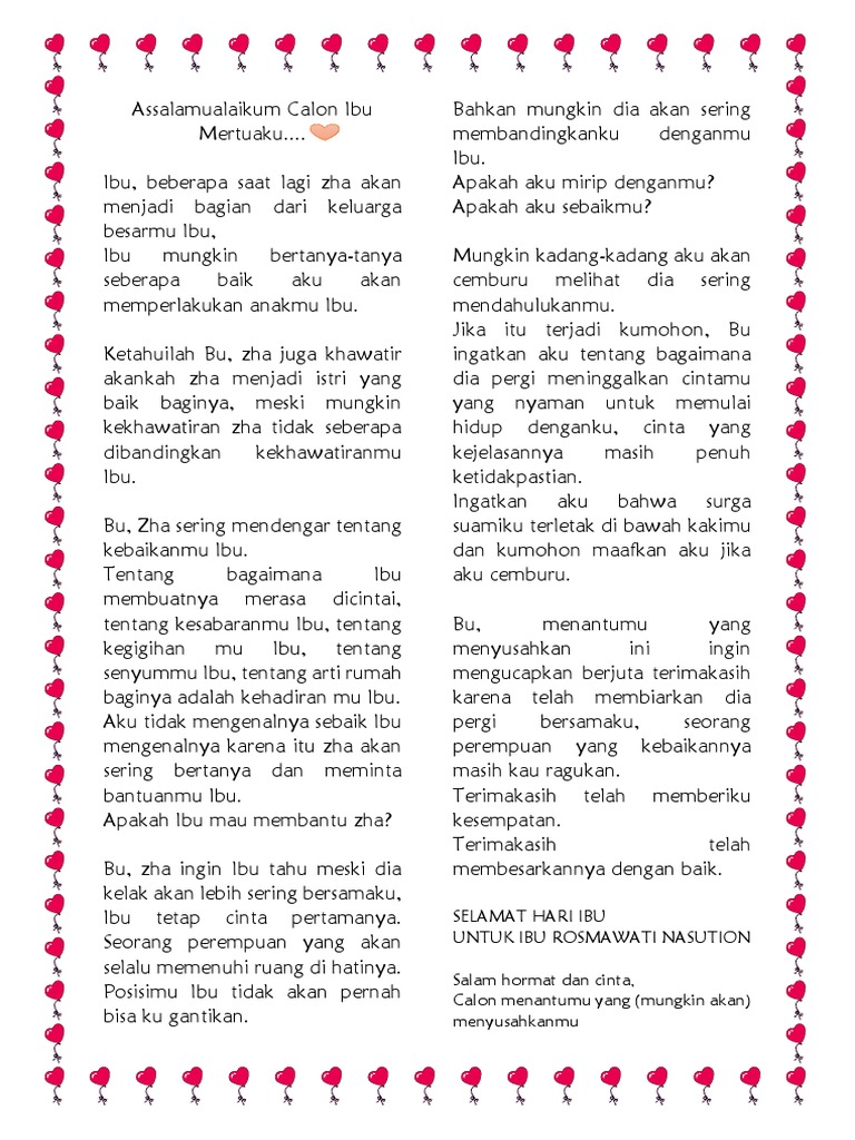 Surat Untuk Ibu Mertua