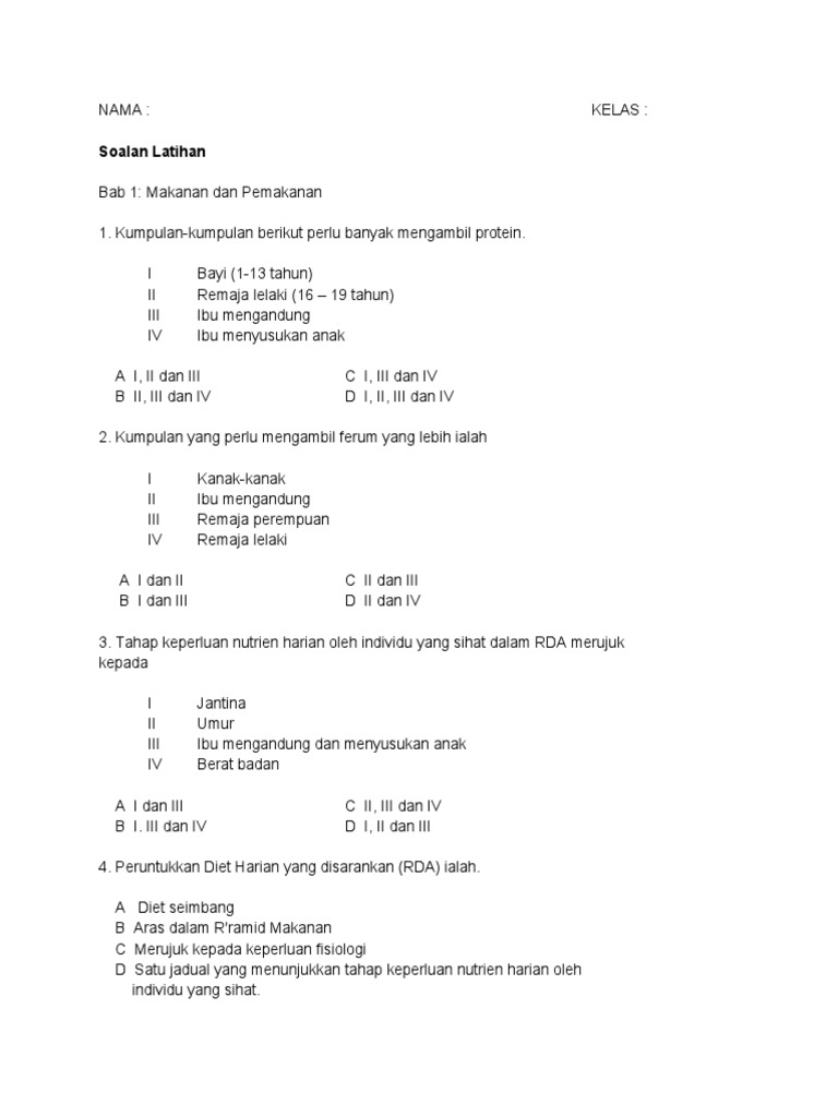 Soalan Bab 1 Pemakanan