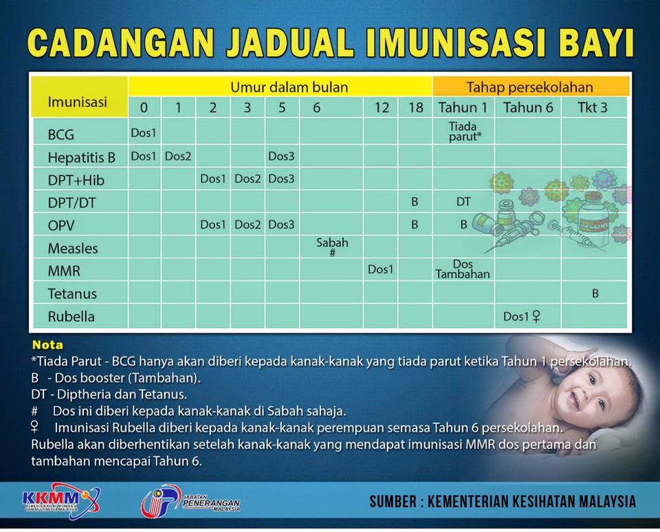 Jadual Imunisasi Kebangsaan Terkini Kkm Suntikan Vaksin Bayi