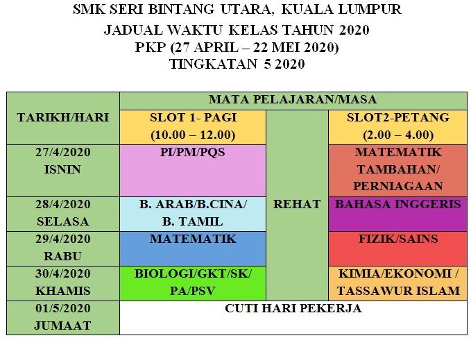 Smk Seri Bintang Utara Jadual Waktu Kelas Tingkatan 5 Semasa Pkp