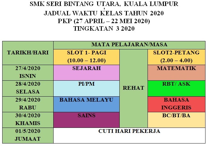Smk Seri Bintang Utara Jadual Waktu Kelas Tingkatan 3 Semasa Pkp