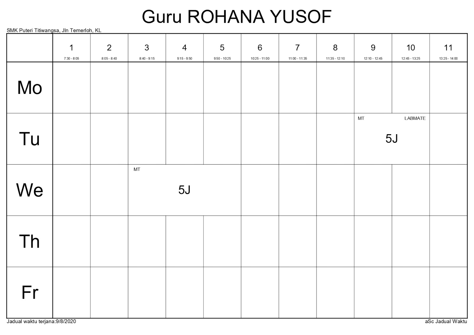 Smk Puteri Titiwangsa Jadual Waktu Guru Kelas Tahun 2020 09 08 2020