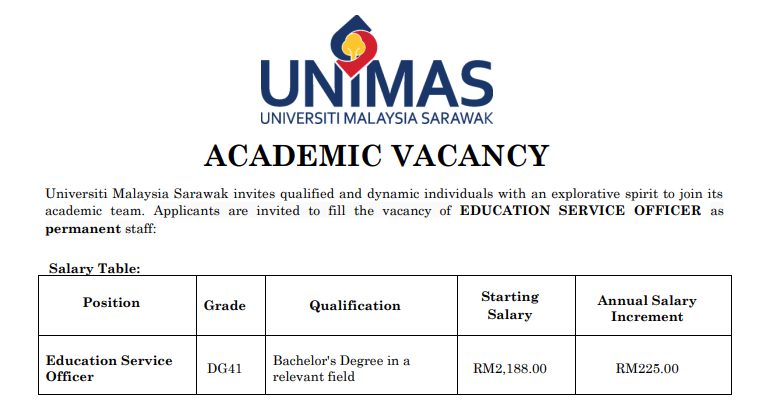 Jawatan Kosong Pegawai Perkhidmatan Pendidikan Di Universiti Malaysia Sarawak Unimas Jobcari Com Jawatan Kosong Terkini