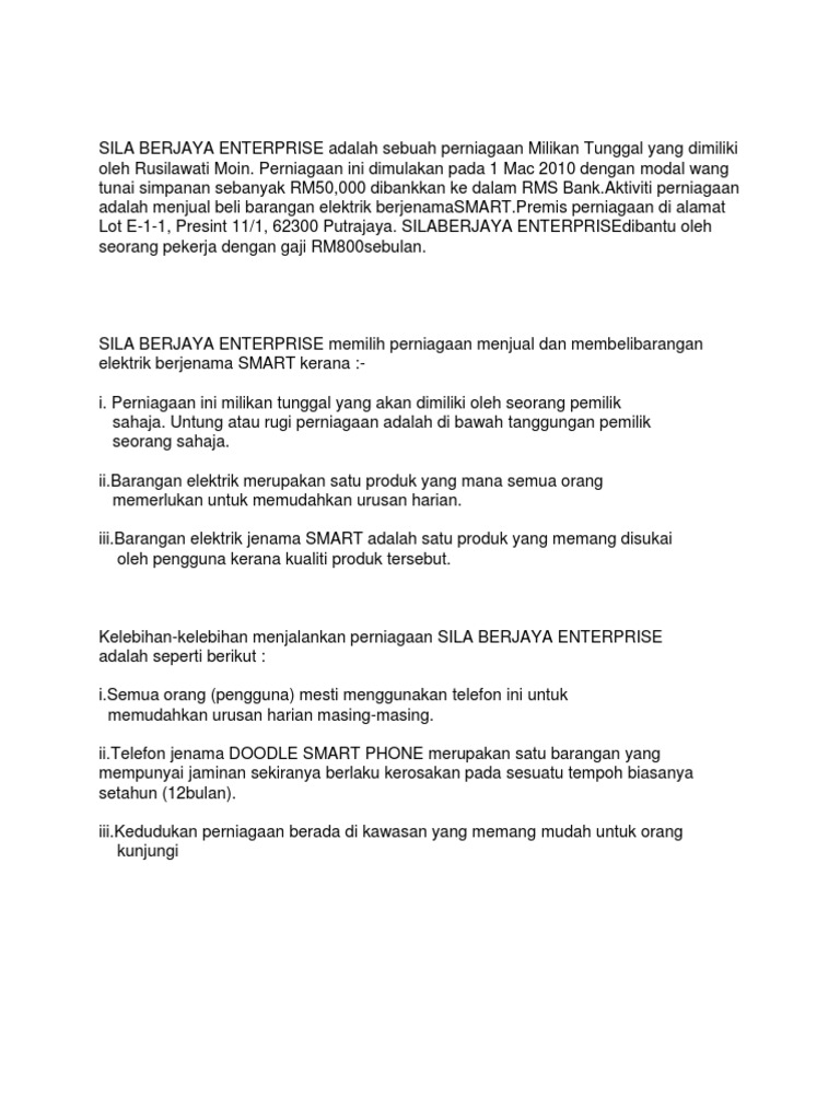Perniagaan secara mutlak pembubaran perniagaan tunggal perniagaan itu dianggap telah tamat apabila pemilik i. Contoh kedai runcit seng huat shah enterprise salun kecantikan azizzah dan restoren sedap slalu. Merupakan perniagaan bumiputera berstatus sendirian berhad perkongsian dan milikan tunggal. Ciri ciri milikan tunggal 7.